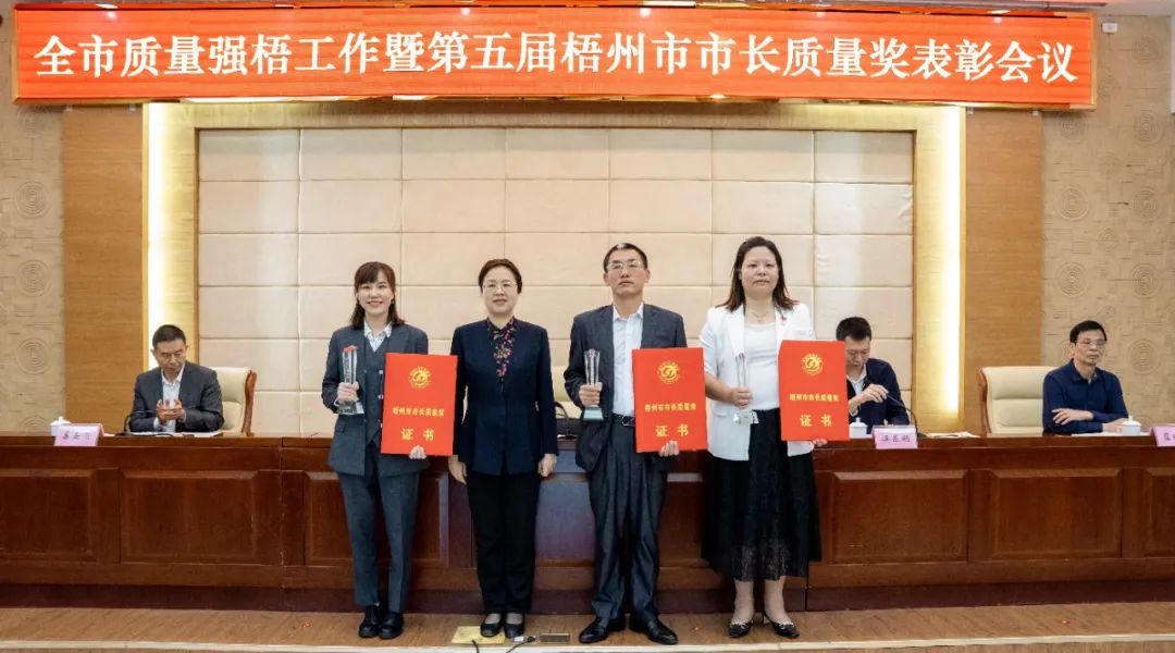 市長(zhǎng)質(zhì)量獎(jiǎng)是梧州政府設(shè)立的最高質(zhì)量榮譽(yù)!受?chē)?guó)務(wù)院特殊津貼專(zhuān)家、集團(tuán)董事長(zhǎng)李浪輝委托,副總經(jīng)理唐專(zhuān)通代表集團(tuán)參加會(huì)議并登臺(tái)領(lǐng)獎(jiǎng)。