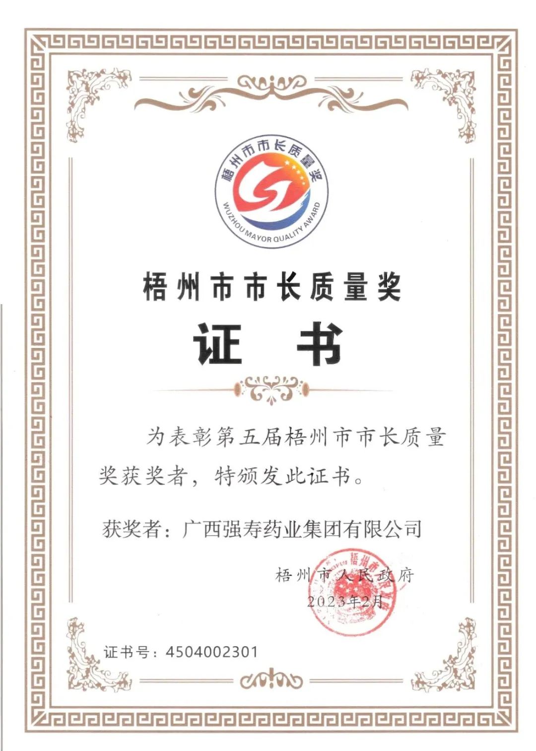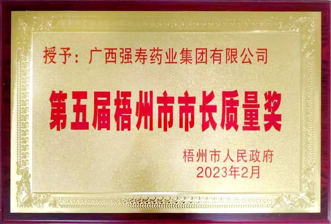 【喜訊】熱烈祝賀強(qiáng)壽集團(tuán)榮獲第五屆梧州市市長(zhǎng)質(zhì)量獎(jiǎng)
